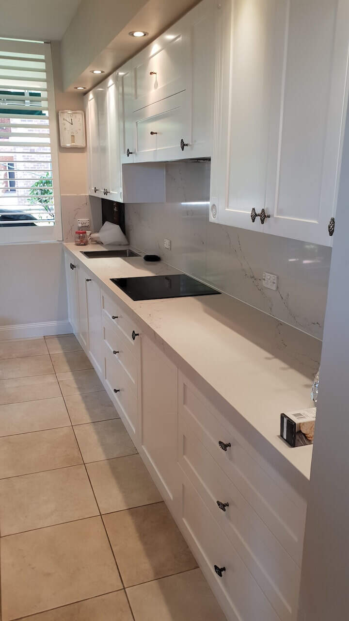 Located on the top floor, this penthouse kitchen renovation was finished with high-end stone tops and splashbacks ‘Caesarstone supernatural ultra Calacatta Nuvo’. All appliances fitted into cabinetry with equal proportions and perfection. Our client stays in touch with us for other odd jobs around the penthouse.
